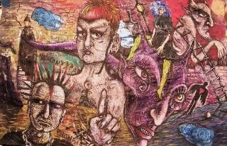 Ezt mutatják a képei is. Nem trendiek. Eredetiek, rázósak, félelmetesek. De egy a lényeg, őszinték. Nem palástolja érzéseit. Láthatjuk démonait. Érezhetjük vergődését, fájdalmát. Nehéz neki az élet. Ez a könyöklős, marketingkultúra nem az ő világa. Ő ott maradt a nyolcvanas években, egykori otthonának, Németországnak a kultúrklímájában. Neki az a hőskorszak, zenéjével, képzőművészetével, kreativitásával együtt.