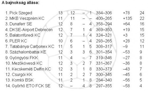 Budapest Bank férfi kézilabdaliga, 12. forduló: