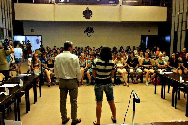 A sajtótájékoztató után megkezdődött a Kossuth teremben a tevékeny munka is. A polgármester bemutatta a városunk történelmét, beszélt legfontosabb kulturális- és sporteredményeinkről, és elmagyarázta a résztvevőknek a magyar önkormányzati rendszer működését. A szerdai program délután ifjúsági konferenciával folytatódik (erről olvasóink holnap részletes tudósítást találnak oldalunkon), majd városismereti játékon vehetnek részt a táborlakók.