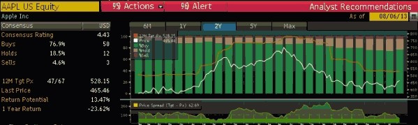 Az elmúlt fél év árfolyam alakulása komoly fejfájást okozhatott a társaság részvényesei számára, hiszen a papír árfolyama az éve eleje óta csökkenő trendben mozgott. A társaság július 23.-án tette közzé második negyedéves gyorsjelentését, ami összességében felülmúlta az elemzői várakozásokat. Az, hogy a társaság hozni tudta a várt számokat az a cég ”zászlóshajójának” az iPhone-nak köszönhető, amiből vártnál többet tudtak értékesíteni. Szám szerint 31,2 millió darabot adtak el, ami közel 20 %-os növekedést jelent a bázishoz képest. A vállalat árbevétele is jól alakult, hiszen a 35 milliárd dolláros elemzői várakozás helyett, 35,3 milliárd dollárt értek el. Továbbá az is jó hatással volt az árfolyamra, hogy tovább duzzadt a cég készpénzállománya, ami az első negyedév végi szinthez képest 9,5 milliárd dollárral emelkedett, annak ellenére, hogy komoly készpénz-visszajuttatási programot hirdetett a társaság három hónappal ezelőtt. A gyorsjelentésből kiderült, hogy tovább csökkent a társaság profitja, de a lejtmenet kisebb volt a vártnál. A profit csökkenésében vastagon benne van, hogy ”csak” 14,6 millió iPad talált gazdára, ami a tavalyi hasonló negyedévhez képest 17 %-os csökkenést jelent. Összességében a nettó eredmény a bázishoz képest 22 %-kal 6,9 milliárd dollárra csökkent, ami részvényenként (EPS) 7,47 dollárt jelent, de így is meghaladta az elemzők által várt 7,30 dollárt.