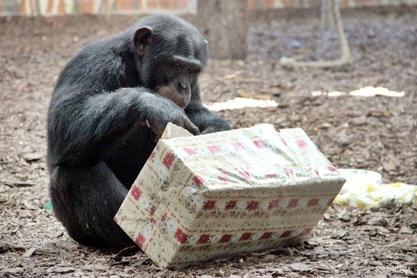 Tjobbe ajándékcsomagjai joghurtot, gyümölcsöket és egy labdát rejtettek. A csimpánzok elsőként a joghurtra csaptak le, és mindenféle segítség nélkül nyitották fel a műanyag dobozokat, mintha a világ legtermészetesebb dolga lenne, hogy a csimpánz kiveszi a hűtőből a joghurtot és elmajszolgatja tízórai gyanánt. A labdát megkergette ugyan, de a korrektség jegyében el kell árulnunk: akik azt mondják, hogy a mai magyar válogatottnál még egy csapat majom is előbb kijutna a világbajnokságra, tévednek.