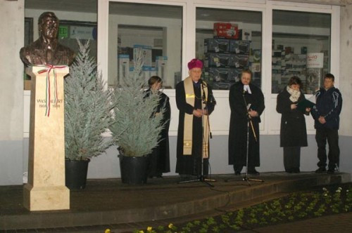 Az ünnepség után a városlakók részvételével meggyújtják az adventi fényeket, és - most először a városban – megnyílik az életnagyságú Betlehem is, ami Kolop József szobrászművész alkotása - közölték a szervezők. A szobornál koszorúkat helyezett el a város, a megye vezetése, köztük Lasztovicza Jenő megyei közgyűlési elnök.