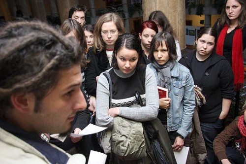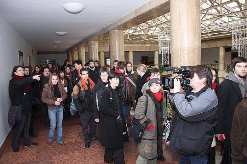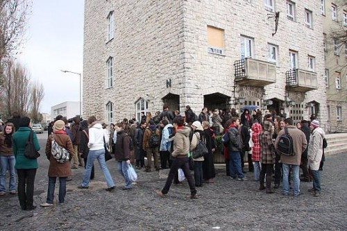Információnk szerint a dékán az utolsó pillanatokban helyezte át fogadóóráját a B épület dékáni titkárságára, ezért az egyetem N épületénél gyülekező hallgatók közösen vonultak le az alsó kampuszra, hogy ott adják át nyilvánosan a petíciót. A titkárság ügyvivő szakértője, Vajda Gábor azonban közölte, dr. Szilágyi István dékán csak azokat fogadja irodájában, akik időben és személy szerint bejelentkeztek hozzá, így csak Omischl Ferenc szakképviselő, Láng Dániel kari hallgatói önkormányzati képviselő és Lócsi Dóra szakképviselő jutott be. Mi hivatalnokok vagyunk, kérem, tartsák tiszteletben a munkahelyünket! - fordult a helyi televíziók és újságok képviselőihez a szakértő.