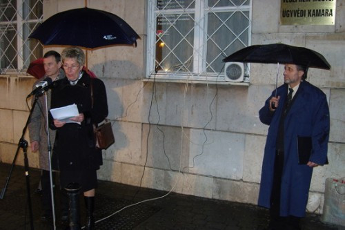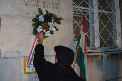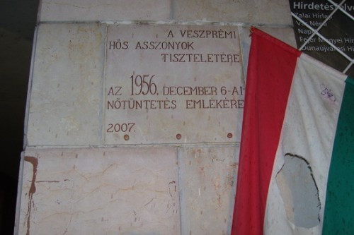 Ezután felolvasta a néma tüntetésen résztvevő hős asszonyok névsorát, majd a jelenlévők, az 56-os Szövetség, a KDNP, a Munkástanácsok, a Fidesz veszprémi szervezeteinek képviselői koszorúkat és az emlékezés mécseseit helyezték el a táblánál.