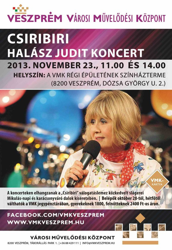 November 23-án ad koncertet a VMK Dózsa úti épületében Halász Judit.