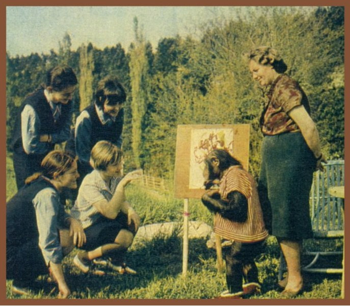 Böbét megtanították tüzet rakni, kávét főzni, szörpöt készíteni, tudott festeni, gyurmázni, agyagozni is, és képes volt kört alkotni ecsettel, ami csimpánzmanccsal elég nehéz mutatvány. Szeretett ablakot törölgetni, és olyan óvatosan dolgozott, hogy sosem tört be az üveg.