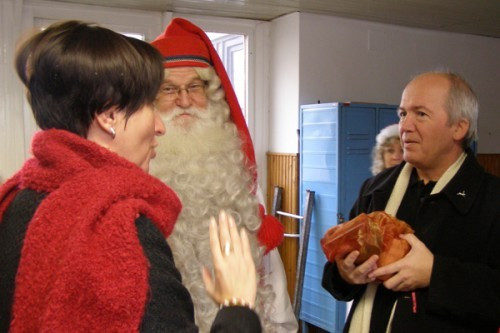 A messzi Lapföldről testvérvárosi kapcsolatunknak köszönhetően Veszprémbe is ellátogatott az igazi Mikulás. Joulupukki nem szánon, hanem négy keréken érkezett, s többek közt a Kozmutza Készségfejlesztő Szakiskolába és a Családok Átmeneti Otthonába is ellátogatott, hogy ajándékkal köszöntse a gyerekeket. Joulupukki mindössze néhány szót, illetve mondatot beszél magyarul, de szívesen csillogtatja nyelvtudását. Azért a manók és egyéb segítők mellett egy tolmács is vele tart útjain. A Mikulás ajándékait versekkel, dalokkal és rajzokkal köszönték meg a gyerekek.