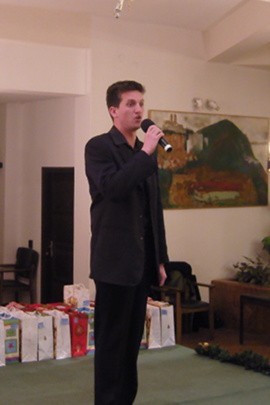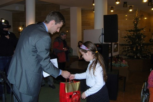 Fazekas Péter köszöntőjében elmondta, hogy feleségével többször beszélgettek arról, hogy milyen rossz lehet azoknak a szülőknek, akik bár szeretnének sok szép ajándékokat adni gyermekeiknek, az anyagi helyzetük ezt nem teszi lehetővé. Ebből jött az ötlet, hogy ők besegíthetnének. Felkérték ezért a város összes iskolaigazgatóját, hogy válasszanak ki két olyan rászoruló diákot, akik az iskolai tevékenységükkel kiemelkednek a társaik közül. A harminchat iskolásnak ezután összeállították az ajándékcsomagokat, melyekbe a LEGO-tól kezdve az elektromos „kütyükig” – az Euronics támogatásával MP3-as lejátszók is – kerültek ajándékok. Emellett szeretnének jó példát mutatni a helyi vállalkozók számára, és remélik, egyre többen csatlakoznak majd a kezdeményezéshez.