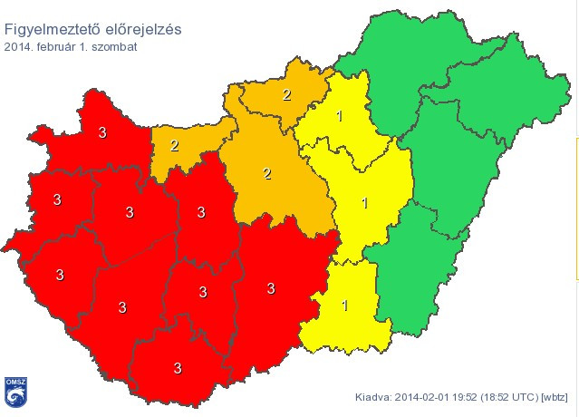 17:44 - Az Országos Meteorológiai Szolgálat a közép-dunántúli területekre narancssárga riasztást adott ki tartós, intenzív ónos eső miatt.