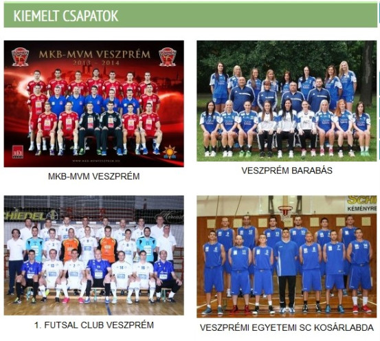 Gondolta volna, hogy a királynék városában több mint félszáz bejegyzett sportegyesület tevékenykedik? E menüpontban valamennyi „műhely” elérhetőségét megtalálhatja. Egyelőre négy alakulatunkról – MKB-MVM Veszprém, Veszprém Barabás Duna Takarék KC, 1. Futsal Club Veszprém és Veszprémi Egyetem SC kosárlabdacsapata – pedig egyebek mellett képes játékos infókat is talál a kiemelt csapatok menüpontban.