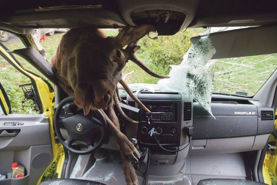 Az alábbi fotó még tavaly készült, amikor egy mentőautó ütközött egy szarvassal. A kép jól illusztrálja, milyen következményekkel járhat egy nem kívánt találkozás a nagyvaddal.
