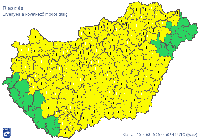 "A talajállapot függvényében por-, vagy homokvihar is előfordulhat. Délutántól fokozatosan mérséklődik a szél. A délutáni órákig elsősorban északkeleten egy-egy zivatar is létrejöhet. Zivatart (vagy erős záport) jég-, vagy hódara, és 80 km/h feletti széllökés kísérhet. Csütörtökön a veszélyjelző rendszerben szereplő időjárási jelenség nem várható" – írja honlapján az OMSZ.