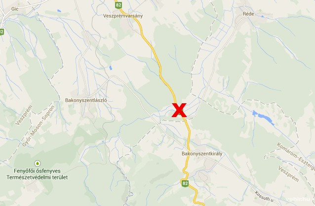 Rendőri irányítás mellett, félpályán halad a forgalom a 82-es út Veszprémvarsány és Bakonyszentkirály közötti szakaszán.