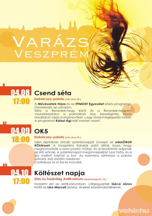 Veszprém páratlan természeti környezete önmagában is kiváló műalkotás, ezeken a helyszíneken rendezvények, programok, a veszprémiek ötletessége, kreativitása együttesen alkotják a “Varázs Veszprém, Veszprém Varázs” programot, melynek létrehozói, elindítói a Veszprémi Kulturális Civil Kerekasztal alapító szervezetei - hangzott el a rendezvénysorozat beharangozó sajtótájékoztatóján csütörtökön délután a Fricskában.