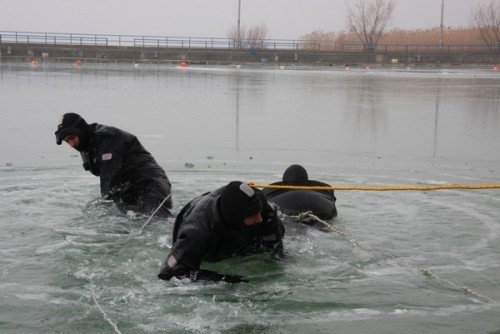 Ekképp kezdődnek azok a cikkek, amelyek valós mentésről adnak hírt a nagyvilágnak. Szerencsére most azonban csak gyakorlat fagyoskodó részesei lehettek azok a sajtósok, akik elfogadták a Balatoni Vízirendészeti Kapitányság és a Vízimentők Magyarországi Szakszolgálatának Közös gyakorlatára invitáló meghívót. A látványos, de főképp tanulságos gyakorlaton ott violtak a Pest Megyei Kutató-Mentő Szolgálat munkatársai, továbbá Nagy Jenő, a Balatoni Vízirendészeti Rendőrkapitányság megbízott vezetője is.
