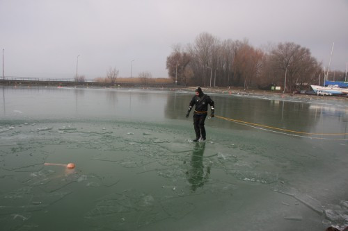 A hétfői gyakorlat bizonyította mindenki előtt: a Balaton jege ma még alkalmatlan arra, hogy azon biztonságosan tartózkodjanak, sportoljanak. A jég vastagsága 4 cm körüli. A Vízirendészet ezúton is kéri, hogy azok, akik korcsolyázni, fakutyázni, vagy csak csúszkálni szeretnének, saját érdekükben is legyenek még türelmesek.