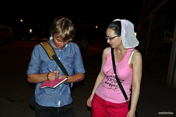 22:08 –Alig hagyjuk ott Barnabásékat, amikor szinte szó szerint összeütközünk egy vidám hölgykoszorúval. Hamar kiderül, hogy egy lánybúcsú kellős közepébe csöppentünk. A menyasszony jó kívánságokat gyűjt az utcán vele szembe jövőktől, így aztán mi is szívesen írunk pár kedves sort a papírra.