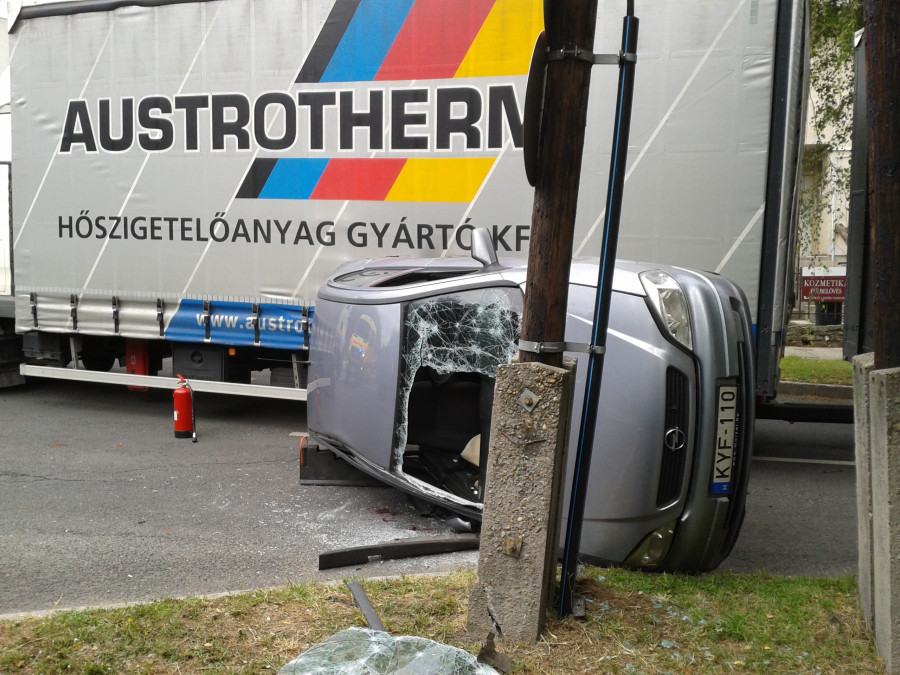 Az ütközés következtében az egyik személyautó az oldalára borult, a tehergépjármű pedig egy villanyoszlopnak ütközött. A felborult gépjárműben két felnőtt, a másik autóban pedig egy gyermek könnyű sérülést szenvedett. A balesethez a veszprémi tűzoltók vonultak egy gépjárműfecskendővel és egy műszaki mentő gépjárművel, akik a járművek áramtalanítását elvégezték. Jelenleg teljes útzár mellett folyik a műszaki mentés.