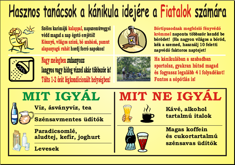 - Kerülje a megterhelő fizikai munkát, tartózkodjék árnyékban a legmelegebb órákban!