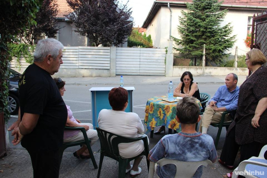 Kellemes hangulatban telt a koraesti összejövetel. A környékbeliek asztallal, székekkel és ásványvízzel várták a politikusokat a Rózsa utca 21. szám alatt.