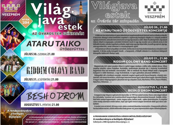 Az Ataru Taiko ütősegyüttes több ezer éves keleti kultúra és japán dobművészet titkaiba avatja be az érdeklődőket. A szerdán 21 órakor, a régi művelődési központban (Dózsa Gy. utca) kezdődő koncert betekintést enged a szigetország lenyűgöző világába. A belépés díjtalan.