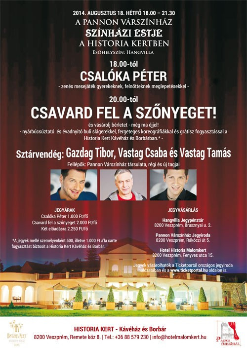 Elhangzott, először a Csalóka Péter című zenés mesejátékot mutatják be, amely a gyerekeknek és a felnőtteknek egyaránt vidám perceket biztosít, ezt követően pedig Csavard fel a szőnyeget! címmel egy musical show elevenedik meg a színpadon, többek között Gazdag Tibor, Vastag Csaba és Vastag Tamás előadásában.