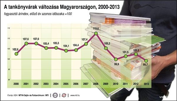 Miután a 2014/15-ös tanévben 1,3 millió tanulónak csöngetnek be, a gyerekek 60 százaléka jut hozzá ingyenesen a könyvekhez, köztük az első és második osztályosok, a nagycsaládosok gyermekei, valamint a szociálisan rászorulók - tette hozzá. A kormányszóvivő tájékoztatása szerint a tankönyvek a korábbi évekhez viszonyítva jóval olcsóbbak, átlagosan 400-450 forintba kerülnek. Összességében körülbelül 20 százalékkal kerülnek kevesebbe, egy átlagos tankönyvcsomagért 11 ezer forintot kell fizetni.