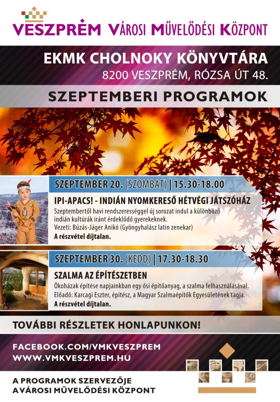 A Cholnoky könyvtár szeptemberi programjai