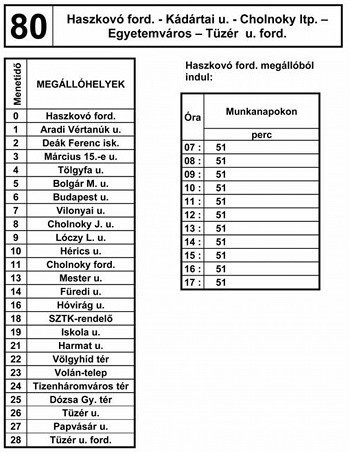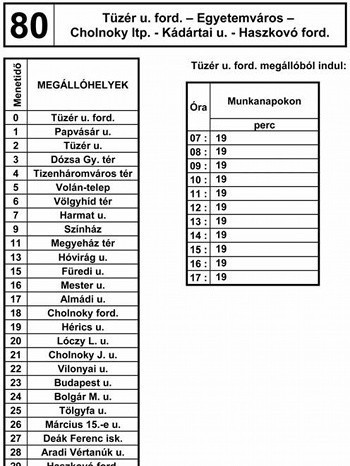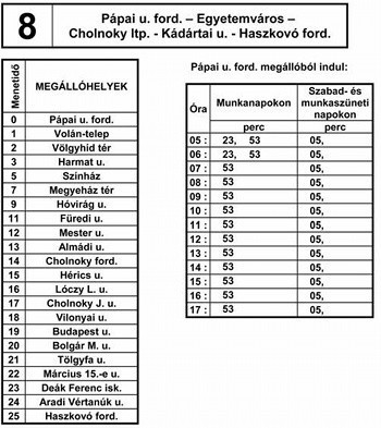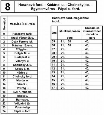 A 8. sz. vonal járatai a 80. sz. vonal járataival közösen a következők szerint közlekednek: