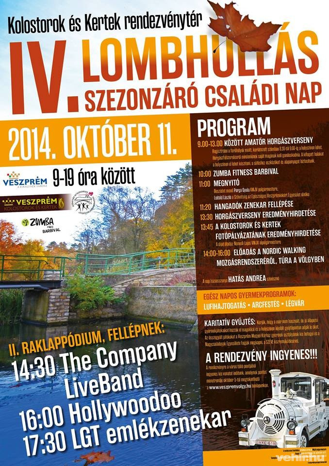 Szabó Péter, a Kolostorok és Kertek Kft. ügyvezetője hozzátette, hogy a rendezvény nem csak a szezont, hanem egy ciklust is lezár, hiszen a megbízatásuk négy évre szólt. Az ügyvezető sikeresnek ítélte meg az elmúlt négy évet és megköszönte a bizalmat és támogatást, amit a várostól és az eseményeiken résztvevőktől kapott a cég. Szabó Péter a IV. Lombhullatás nevű szezonzáró rendezvénnyel kapcsolatban elmondta, hogy idén is nagyon gazdag program várja az érdeklődőket. Amatőr horgászverseny, gyermek programok, zumba edzés, Nordic Walking és számos helyi zenekar koncertje is helyet kapott a programkínálatban. A rendezvényre a város több pontjáról ingyenesen igénybe vehető kisvonat indul, melynek menetrendje megtekinthető a Kolostorok és Kertek honlapján.