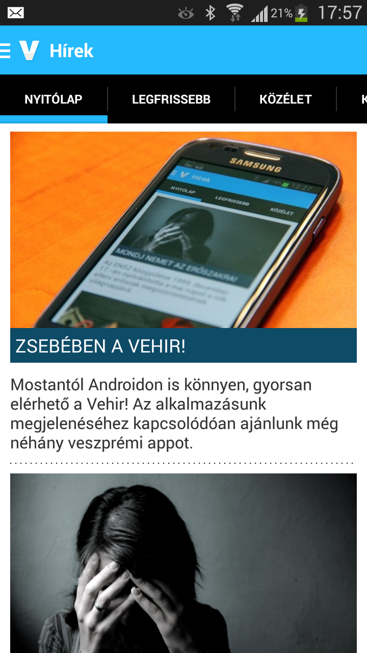 A Vehir.hu új applikációja mostantól elérhető a Google Play-en. Az alkalmazást nemcsak azért érdemes letölteni, mert gyorsabban jeleníti meg az oldalakat, mint a mobilböngészőben megnyitott kiadásunk, de több exkluzív funkciót is beépítettünk a programba. Például értesítést küldünk a legsürgetőbb hírekről – így azonnal értesülhet róla, ha a közelben baleset, vagy más jelentős esemény történt. Az alkalmazás segítségével olvasóink közvetlenül küldhetnek nekünk képeket, híreket, ha út közben valami olyasmit látnak, amit érdemes megosztani.