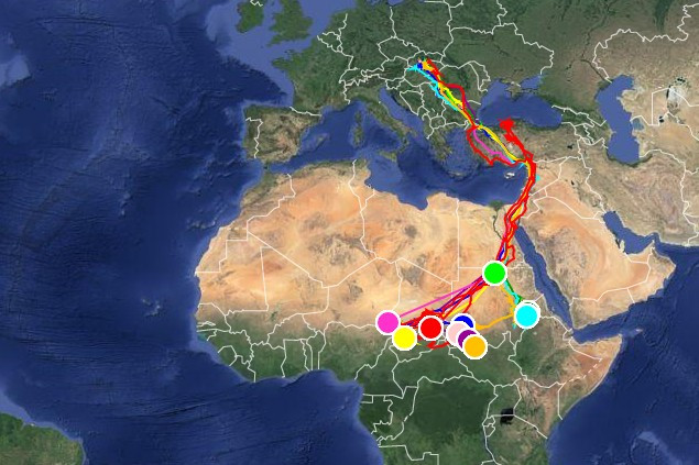 A madarak jeladója az után kezdett el újra működni, hogy olyan területekre értek, amelyeknek jobb a GSM-hálózat lefedettsége. A koordináták alapján a madarak már megkezdték a telelést a Szaharától délre eső területeken.