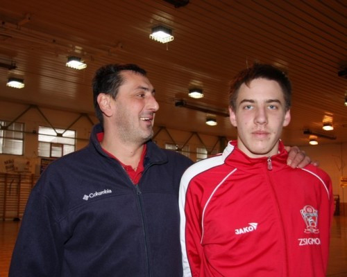 Zsigmond Ádám még csak 14 esztendős, s már most olyan magas, mint édesapja. Roppant céltudatos fiatal benyomását kelti: szeretne minél jobb lenni, s az NB I-ben szerepelni. Büszke apja eredményeire, s örül neki, hogy edzőként is számíthat rá.