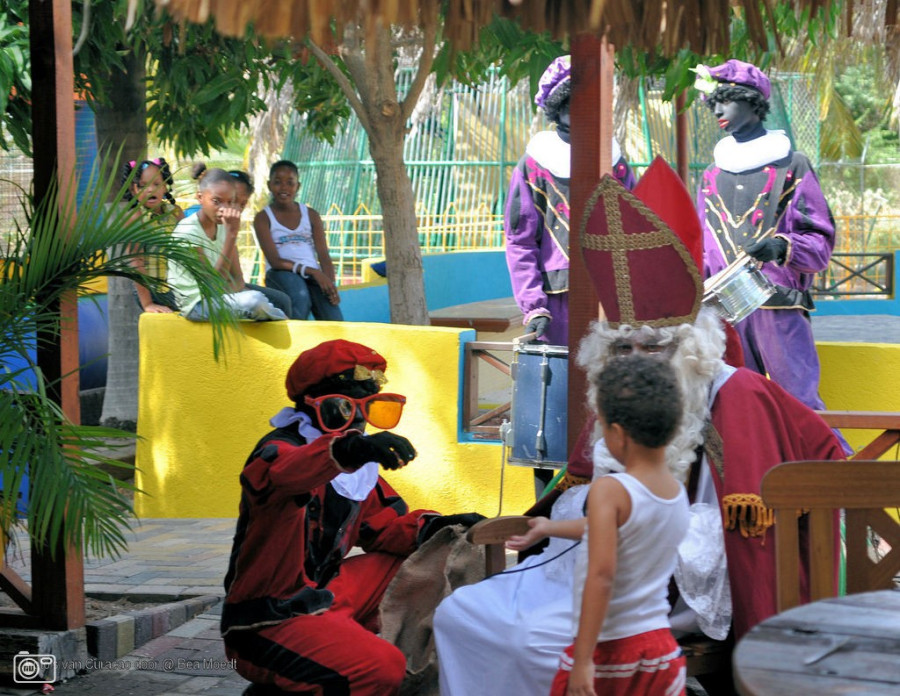 Sinterklaas természetesen a mi európai katolikus Mikulásunkhoz hasonlóan néz ki, hegyes kalapot és piros köpenyt visel, kezében kampós botot tart, hóna alatt pedig könyvet hordoz. Ő aranyszínű kísérő személyzetével érkezik a szigetre, akiket Zwarte Pietenként ismernek, és a sok kéményben való mászkálástól fekete arcuk van. Magyar szokásokhoz hasonlóan a gyermekek bakancsot tisztítanak, és úgy várják őket.