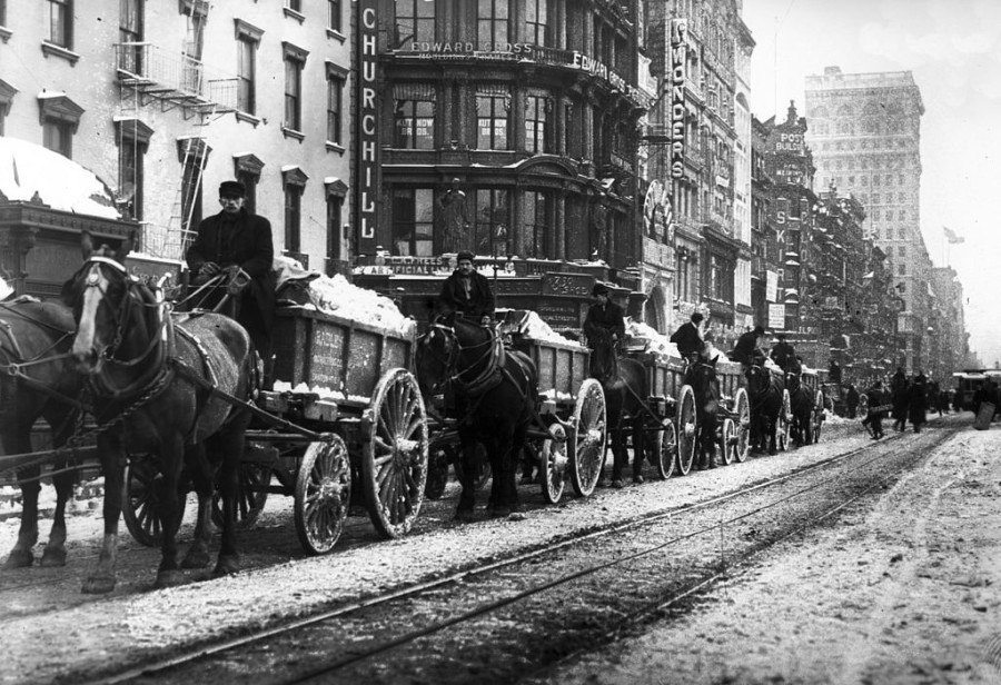Hogy a nagyobb városokban milyen régóta bevett gyakorlat ez a megoldás, azt talán az alábbi, 1908-as New York-i fotó illusztrálja a legjobban.