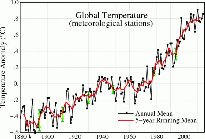 1880 óta a Föld átlaghőmérséklete 0,8 fokkal emelkedett, ez főleg a széndioxid-kibocsátásnak és egyéb káros gázok termelésének tudható be. A felmelegedés igazán az elmúlt három évtizedben gyorsult fel.
