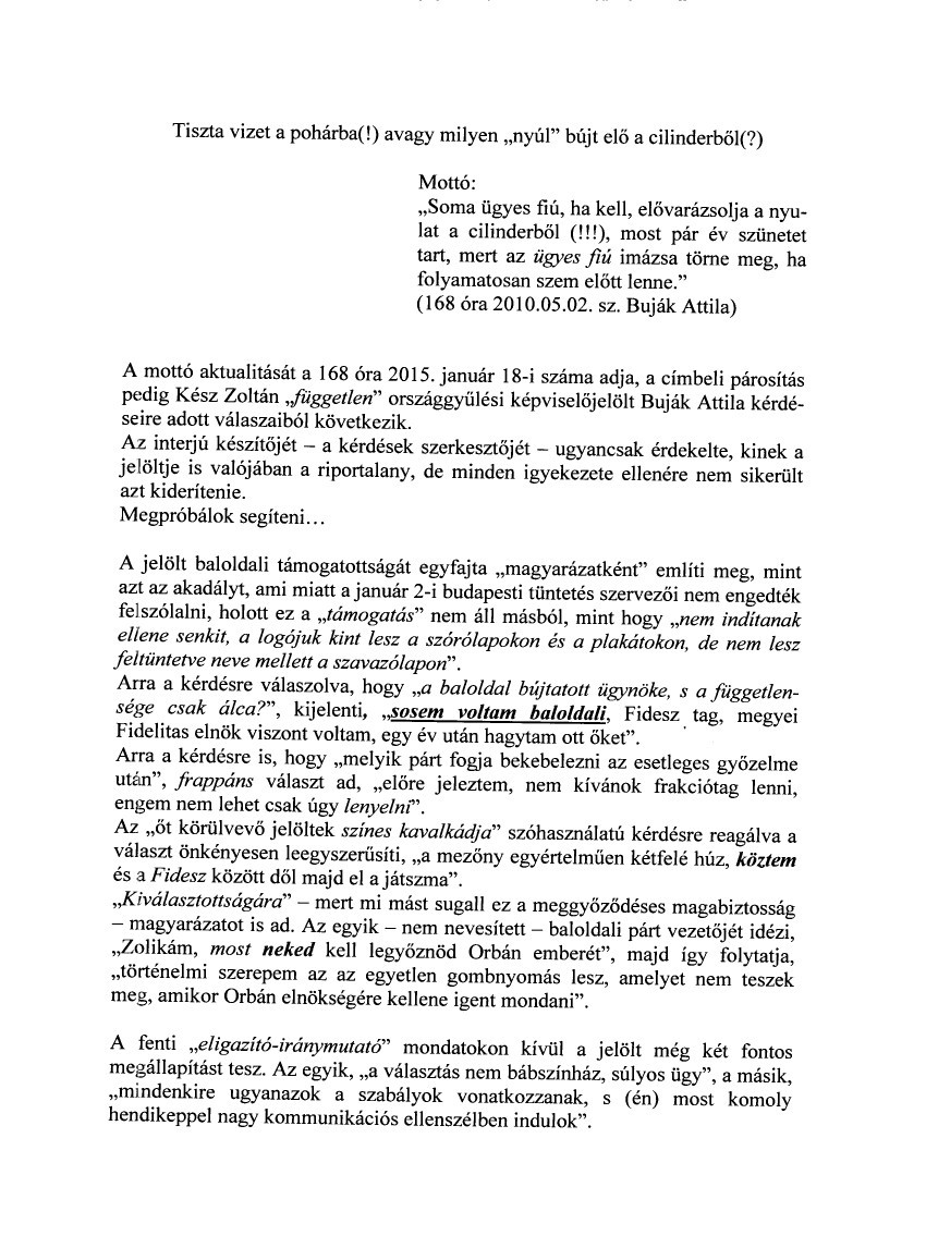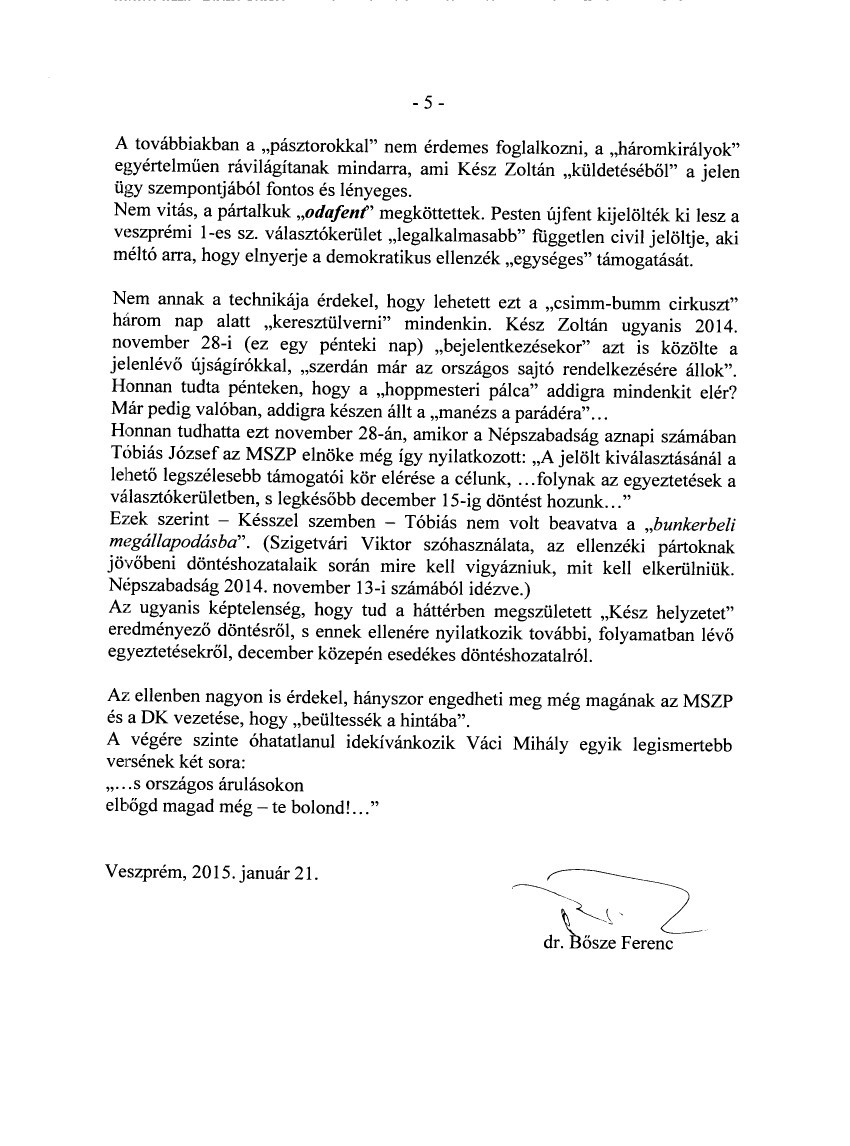 Kész Zoltán indulásának körülményeit fejtegeti a szerkesztőségünkhöz eljuttatott dokumentumban Bősze Ferenc.