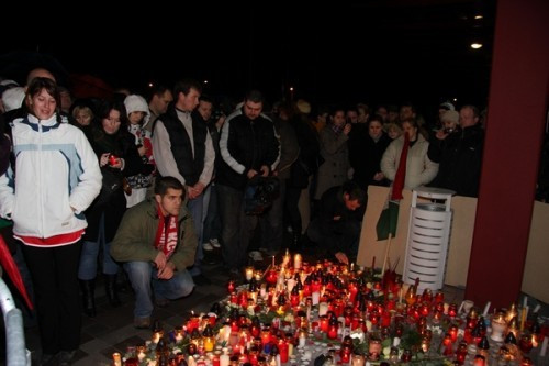 Mindeközben folyamatosan zarándokoltak a veszprémiek, de a távolabbiak is a gyilkosság színhelyére, ahol elhelyezték mécseseiket, virágaikat. Nagyon sok síró, szomorú arccal lehetett találkozni. Az emberek kisebb-nagyobb csoportokba verődve próbálták meg összerakni a hajnaltól eltelt időszak kockáit.