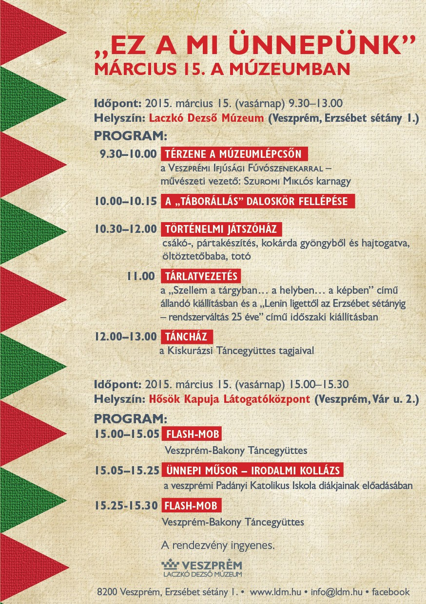 Időpont: 2015. március 15. (vasárnap) 9.30–13.00