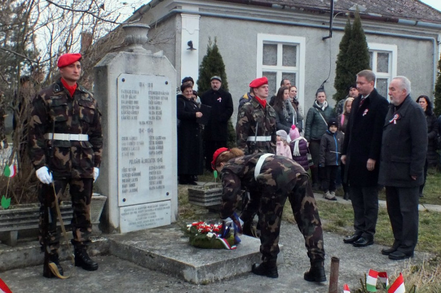 Az ünnepi programban a Légierő Zenekar és a Ficánka Tagóvoda csoportja működtek közre. A megemlékezés után az óvodások papírzászlókat, a részönkormányzat képviseletében Czaun János koszorút helyezett el a templomkertben található emlékműnél.