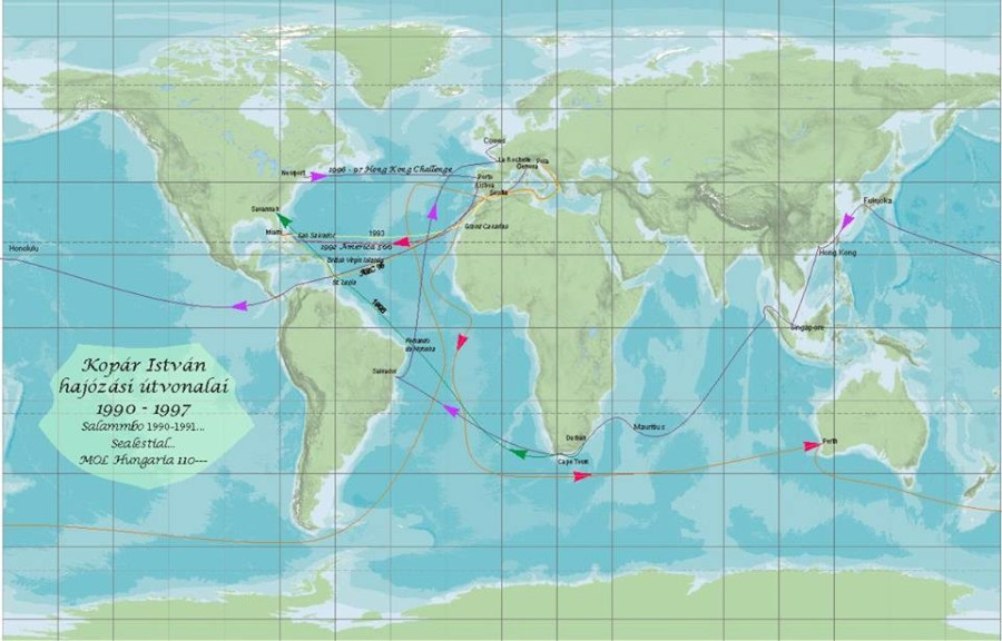 Kopár Istvánról tudni kell, hogy ő az első magyar vitorlázó, aki körbehajózta a Földet, a Salammbo nevű vitorlásán egyetlen kikötéssel kelet-nyugati irányban teljesítette az utat 1990-ben. Erről szól a Kihívás I. című kötet, amelyet 2012-ben a második kötettel együtt, DVD-melléklettel adtak ki.