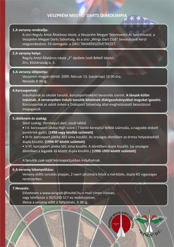 Vasárnap kerül megrendezésre a Veszprém Megyei Darts Diákolimpia, minden játékos részvételére számítunk!