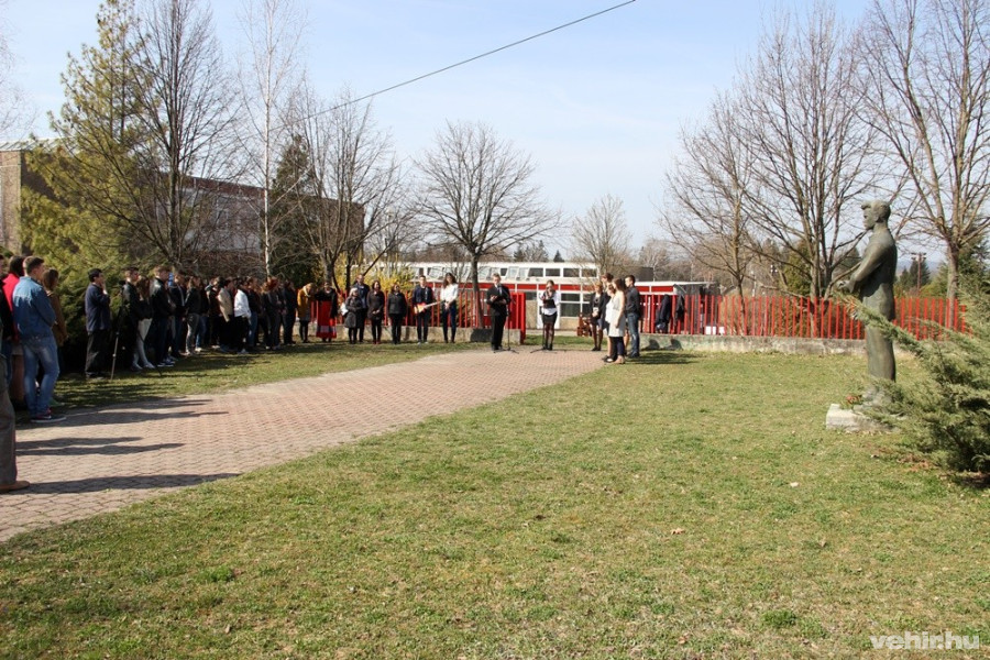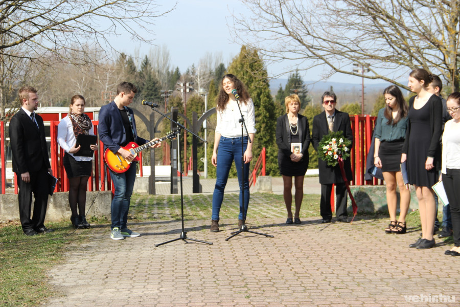 A műsor Villányi Edit Utószó című József Attila születésnapjára írt gondolataival zárult, majd a Vetési Gimnázium képviseletében a diákok, a veszprémi önkormányzat nevében pedig Hegedűs Barbara helyezett el koszorút az intézmény mellett álló József Attila szobornál.