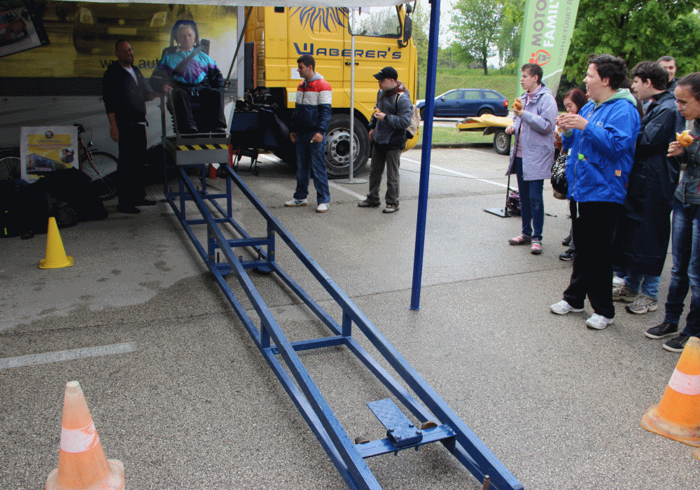 A Tesco parkolójában állomásozó "Biztonságosan közlekedni egy életúton" ingyenes program május 3-ig minden nap nyolctól 18 óráig látogatható.