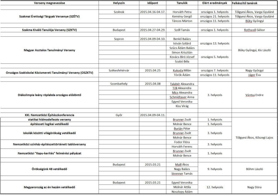 A Táncsics Mihály Szakképző Iskola eredményei az idei tanulmányi versenyekről.