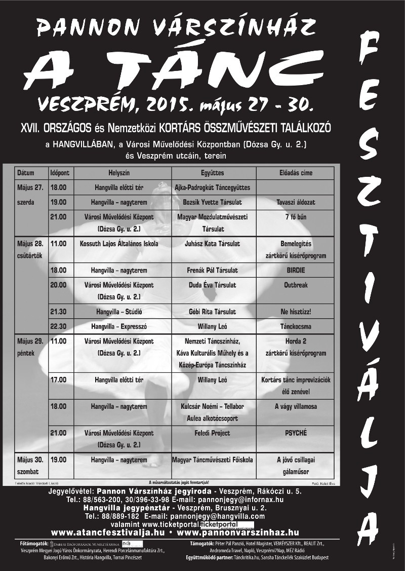 Különösen izgalmasnak ígérkeznek az irodalmi művek táncadaptációi, így A vágy villamosának és Weöres Sándor Psychéjének feldolgozását is láthatja a közönség pénteken. Rendhagyó módon prezentálja művészetét a Willany Leó, akik tánckocsmát tartanak az Expresszóban. A fesztivált a Táncművészeti Főiskola hallgatóinak gálaműsora zárja, amelyben a klasszikus balettől a modern táncig felvonultatják az intézmény képzési spektrumát.