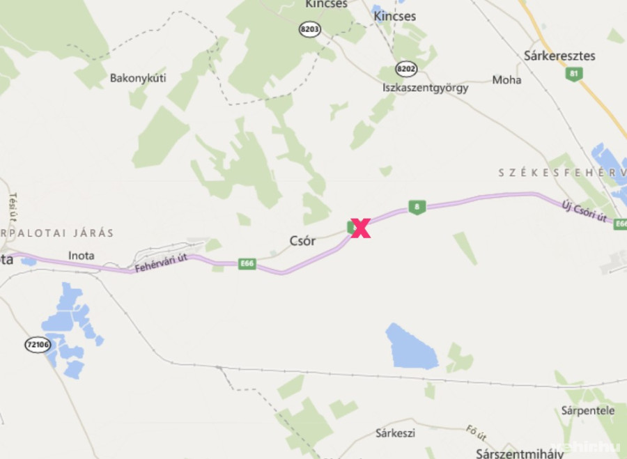A kavicsot szállító jármű rakományának egy része az útra szóródott. A Veszprém felé vezető oldalt lezárták, Iszkaszentgyörgy felé lehet kerülni, a Székesfehérvár irányába tartók pedig a baleset mellett ha lassan is de el tudnak menni. Székesfehérvárról a hivatásos tűzoltók vonultak a helyszínre, a kamiont áramtalanították, ha kell, a műszaki mentésben is segítenek.
