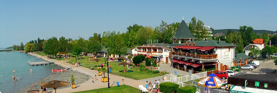 Több, mint fél kilométer hosszú a partszakasz, ahol –ahogy már korábban is volt róla szó- bőven találni árnyékot adó lombokat, de a napozók is kifeküdhetnek a két telepített stégre. Szubjektív, de a keskeny partszakasz inkább hozzá tesz a komfortérzethez, mint elvesz, hiszen a bejárathoz közel van az a pancsoló rész, ahol a szülők könnyen elhelyezhetik gyermekeiket, és a boltok, vendéglátóhelyek sincsenek nagyon „szétdobálva”.