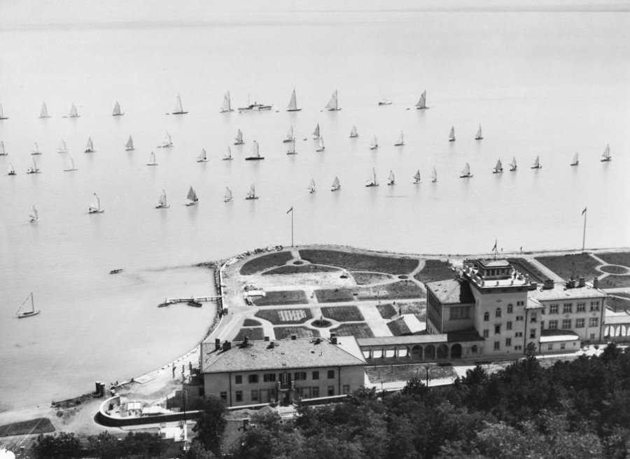 Tihany, a Magyar Tudományos Akadémia Balatoni Limnológiai Intézete. Vitorláshajók felvonulása. (Fortepan / SOMLAI TIBOR)