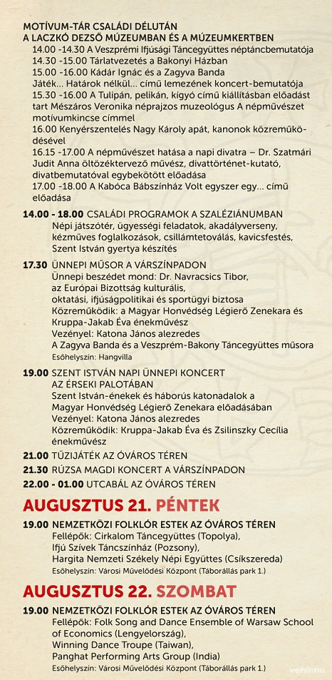 Szerdán este már elkezdődnek és szombat estig tartanak a Szent István napi ünnepi programok a városban.